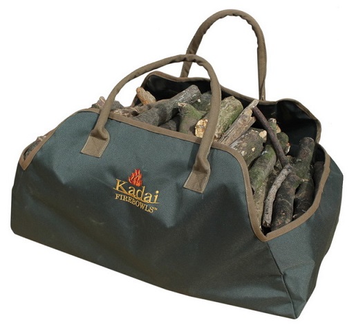 Taška na přenos dřeva v tmavě zelené barvě. Nejen pro přenosné ohniště.