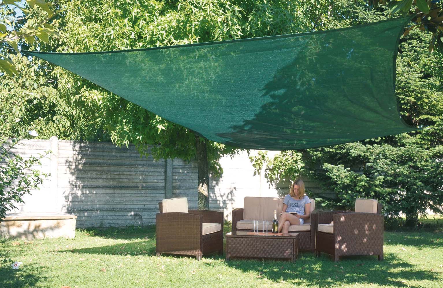 Stínící plachty jsou ideálně zhotovené pro vytvoření zastíněných ploch na Vaší zahradě. Zesílené prošívání, ocelové kroužky v každém rohu, dodáváno kompletně s upevňovacími lany