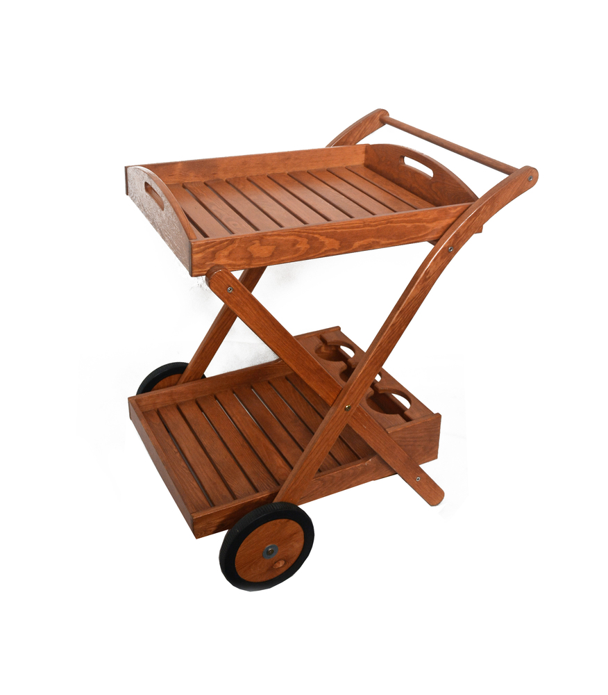 Servírovací stolek na kolečkách, vyroben z borovicového dřeva - lakované.