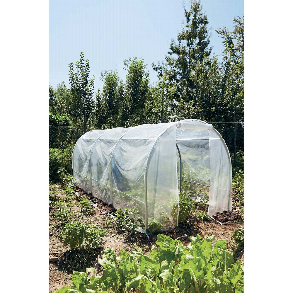 Tento kvalitní zahradní fóliovník italské značky VERDEMAX má odolný nerezový rám z pozinkované oceli sestavený z oblouků a nosníků. Vysoce kvalitní průhledná plastová fólie s odolným anti UV filtrem zajišťuje delší životnost, chrání před větrem, deštěm, zimou i UV zářením. Fóliovník má vstupní otvor na zip pro snadný přístup 80x170 cm. Otevření lze zajistit popruhy.