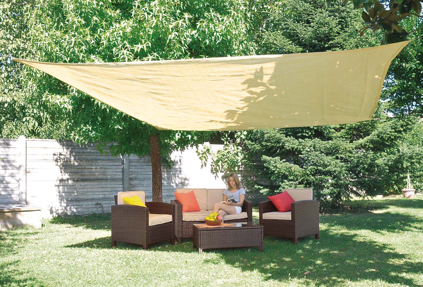 Stínící plachty jsou ideálně zhotovené pro vytvoření zastíněných ploch na Vaší zahradě. Zesílené prošívání, ocelové kroužky v každém rohu, dodáváno kompletně s upevňovacími lany