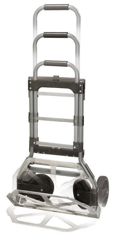 Lehký a pevný vozík - rudlík s nosností 150 kg, pevná kola, ocelový rám, ložná plocha vyrobena z tvrzeného hliníku. Ideální k běžné manipulaci s materiálem na pevném povrchu. Několika pohyby lze rychle vozík složit na rozměr 85 x 52 x 7 cm. Lehce se tak vejde do úložného prostoru nebo do kufru osobního automobilu.