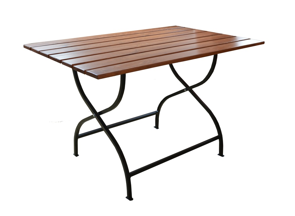 Dřevěný skládací stůl v hnědé barvě + kovová kostra.